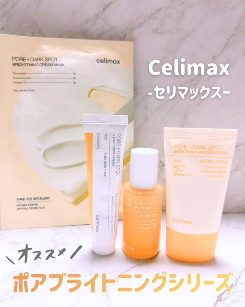 Celimax(セリマックス)は、乾燥肌や敏感に傾きやすい肌の方に向けて開発された韓国のスキンケアブランド。なかでもポアブライトニングシリーズは、シミやくすみに悩む方から高い支持を得ています。