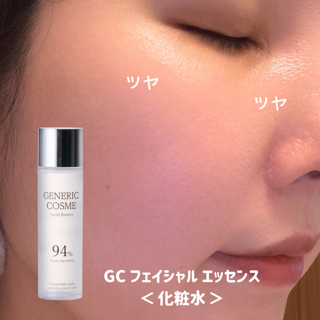 ジェネリックコスメ「GCフェイシャルエッセンス」は、美容成分を94%配合した化粧水。主成分であるガラクトミセス培養液が、角質層までしっかりとうるおいを届けてくれます。