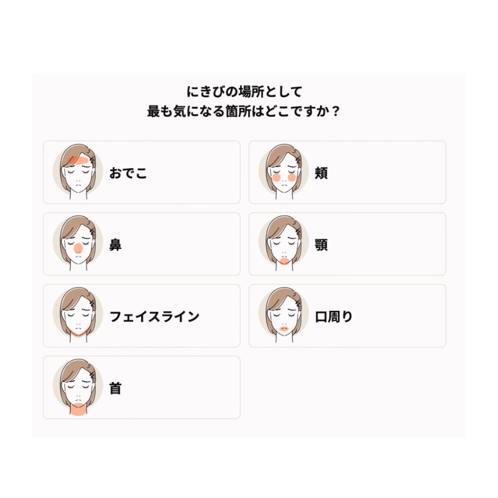 気になる肌悩みをを選択し、質問に答えていきます。チャット問診は24時間受付中です。