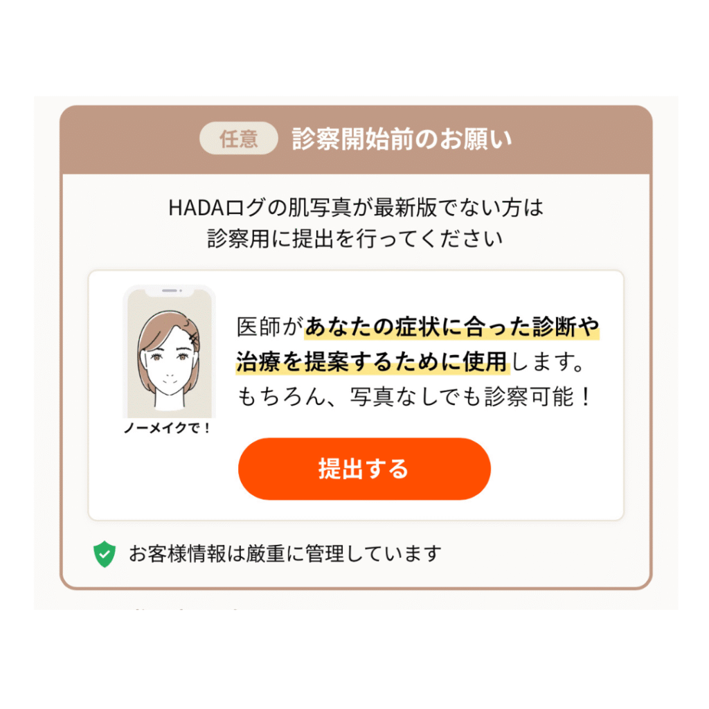 症状を確認してもらう場合は、ここで顔写真を提出します。(より具体的な診断ができるので提出をおすすめします!)