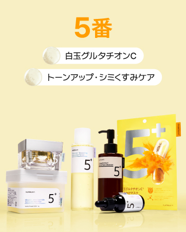 韓国を代表するスキンケアブランド「numbuzin(ナンバーズイン)」。なかでも白玉グルタチオンCラインとして人気の5番シリーズは、グルタチオンとビタミン成分を配合した集中ケアラインです。肌の透明感3(ツヤ白玉肌)を引き出したい方におすすめのアイテムがそろっています。