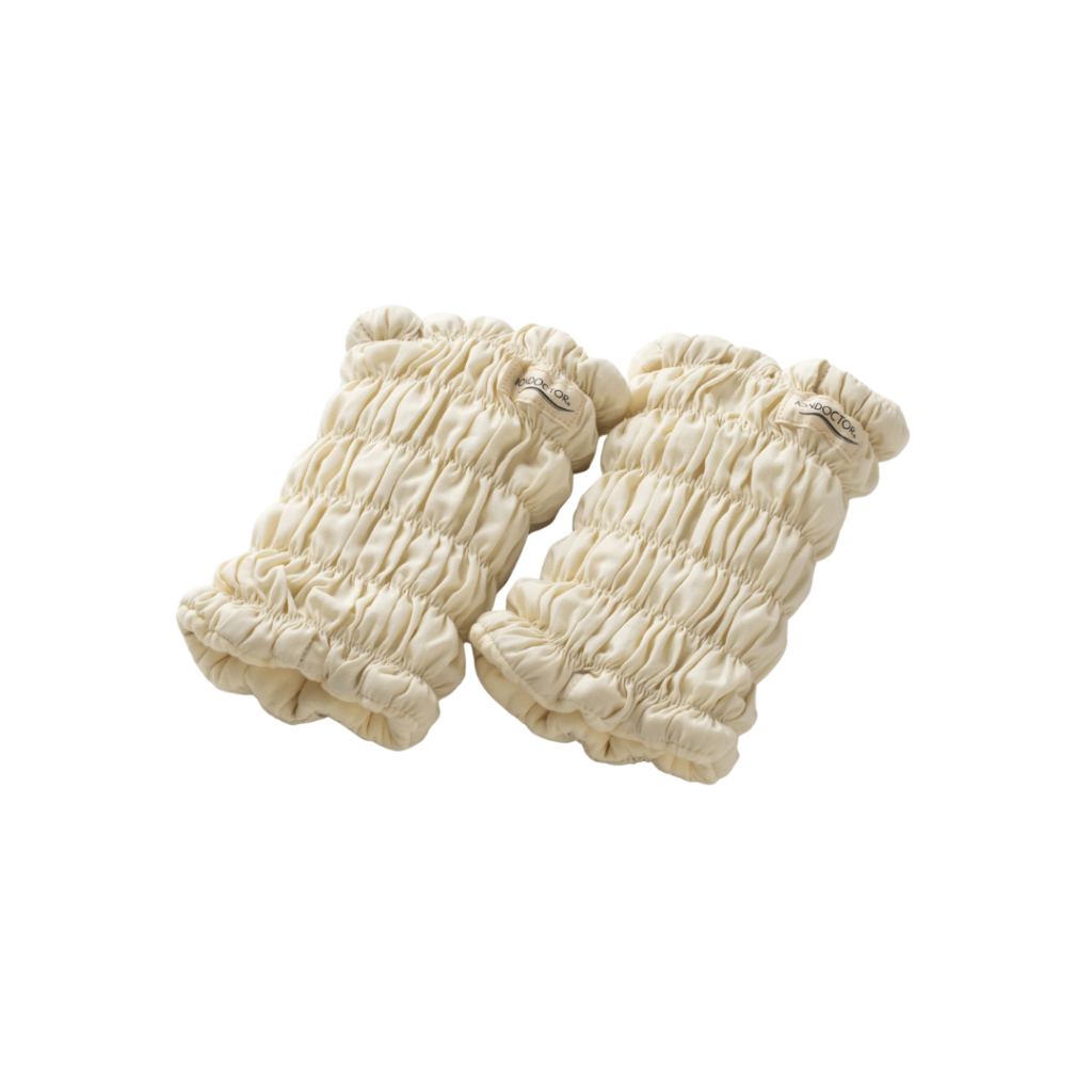 コットン100%を使用したイオンドクターのレッグウォーマー。体全体の冷え改善につながる、足首の三陰交というツボをやさしく温めます。締め付け感のない縫製で、身につけているのを忘れるような軽さもポイントです。