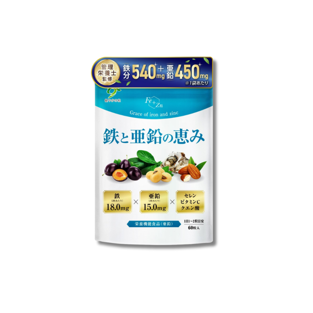 女性に不足しやすい鉄と亜鉛をメインとしたサプリメント。「不足分の栄養素を補えるように」のコンセプトのもと、鉄と亜鉛の吸収率をアップさせるために、ビタミンCとクエン酸を配合しています。天然ミネラル豊富な竹炭末を含むことで鉄っぽさが軽減されています。